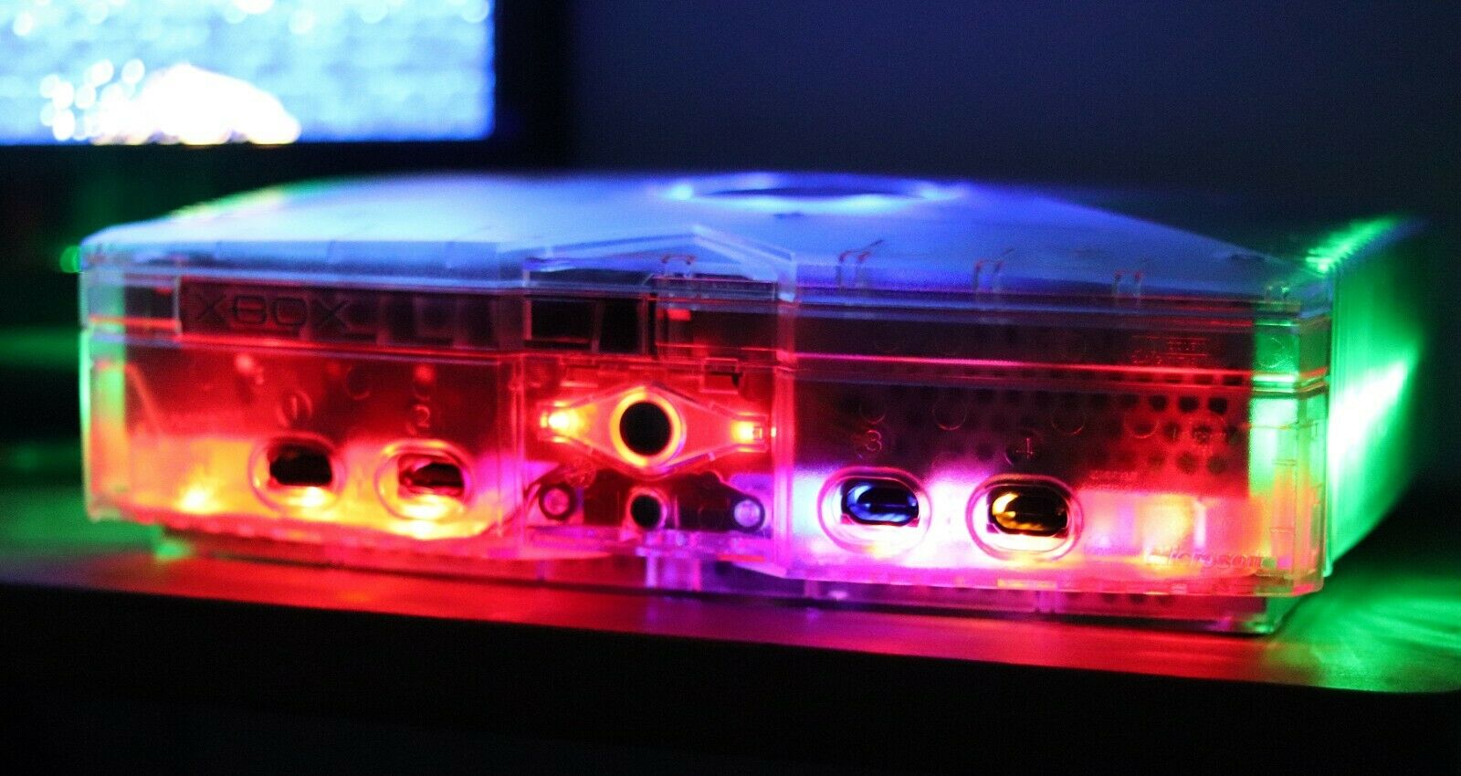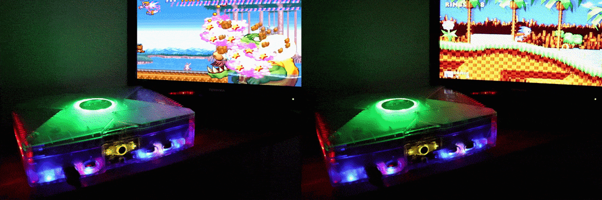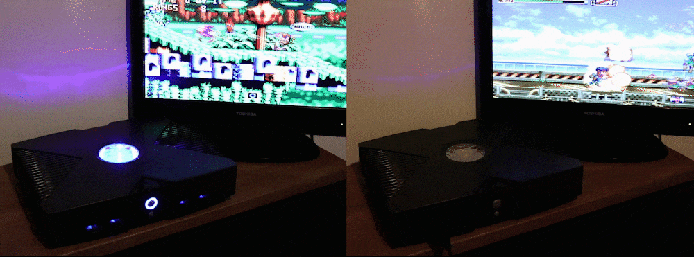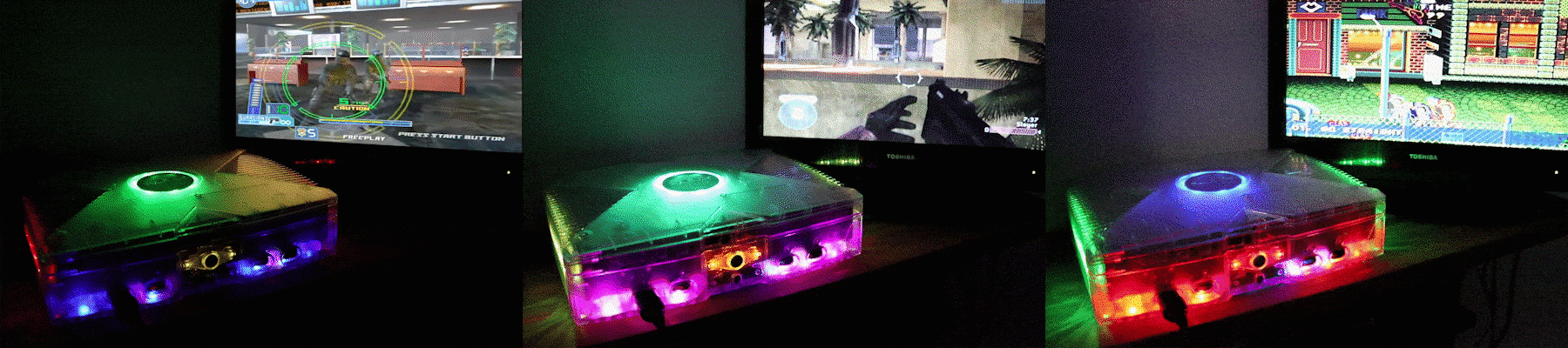 Original OG Xbox, 2 Terabyte Hard-drive, RGB LED's, Jewel Halo, RGBY LED controller ports, 80 pin up-rated IDE cable + Sata adapter, Arctic Silver 5 thermal paste on CPU and GPU, Clock capacitor removed, EEPROM nulled (unbrickable), TSOP flashed running latest EvoX M8 Plus BIOS (Permanent)