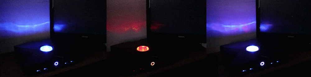 RGB LED's connected to the power ring and can be controlled in software by any program/BIOS that sets power ring state. Can be set from off to disco cycling.